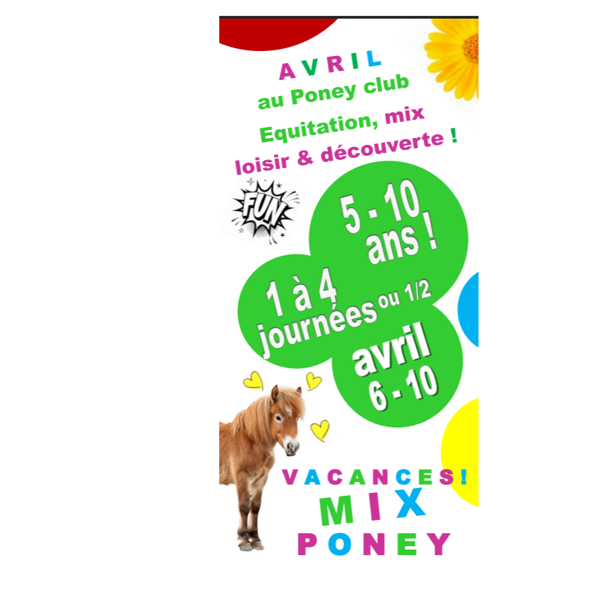 A nouveau le Poney club propose aux 5-10 ans de venir à Laizé lors des vacances de Pâques se familiariser à l'équitation par le jeu..!
