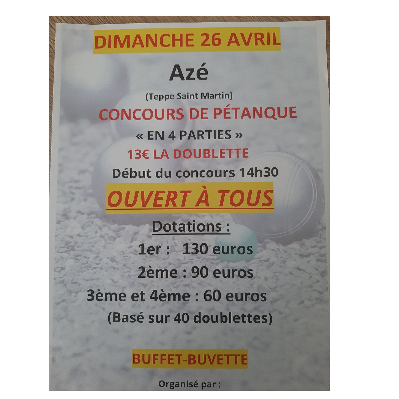 Concours de pétanque le dimanche 26 avril à Azé - Teppe St Martin
