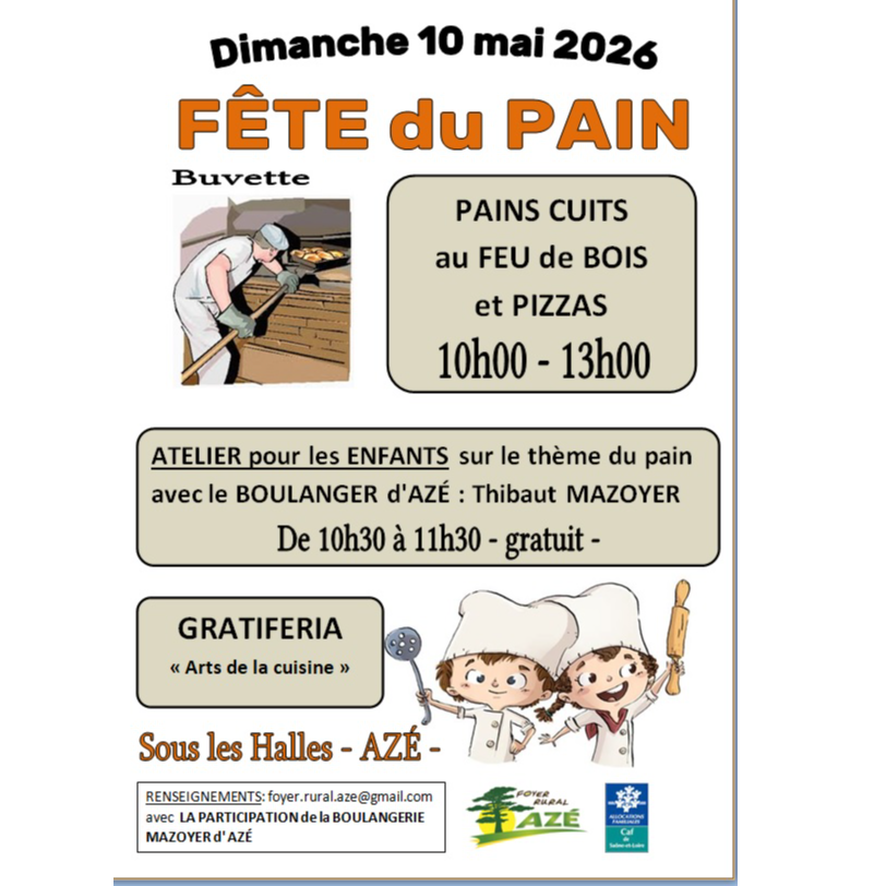 Atelier pour les enfants sur le thème du pain avec le boulanger d'Azé Thibaut MAZOYER de 10h00 à 11h30 - gratuit